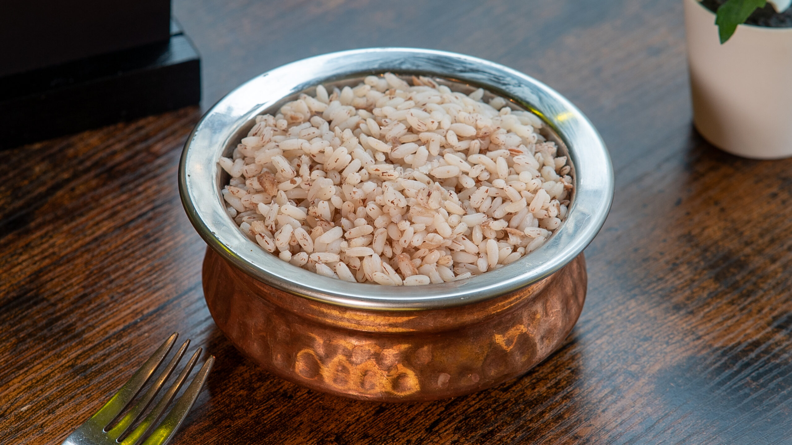 Le matta rice est un riz rosé originaire du Kerala, au goût de noisette et à grains épais, riche en fibres et minéraux, souvent servi avec les currys traditionnels du sud de l’Inde.